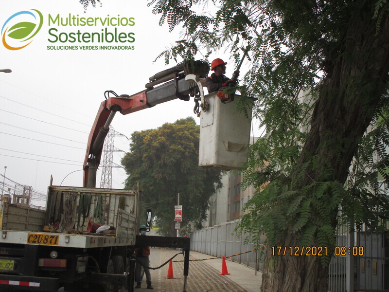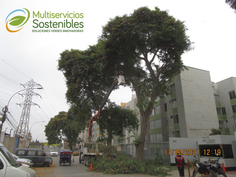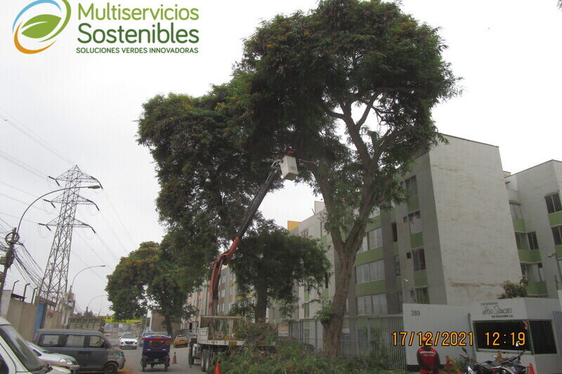 • Ejecutamos la poda de árboles y palmeras a nivel del suelo y de altura, con equipos de trepa o maquinaria, para despeje de cableado eléctrico y áreas de servidumbre.